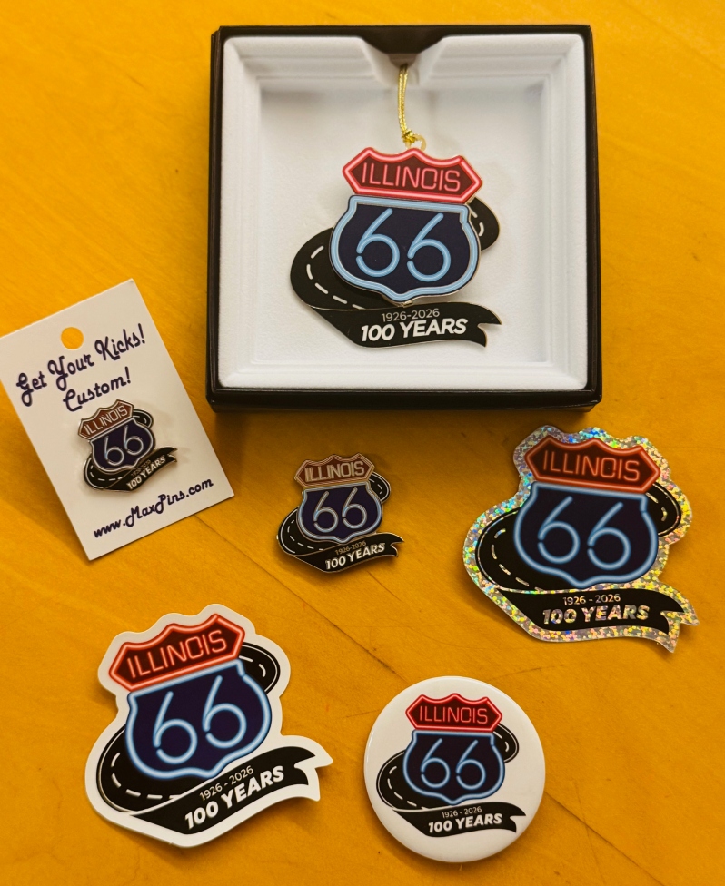 Welcome to the Illinois Route 66 Scenic Byway Online Store. We hope you find something you like and if you are looking for something in particular, please reach out to us at casey@illinoisroute66.org and we will help you find it! THE PRICE SHOWN INCLUDES SHIPPING & HANDLING WITHIN THE CONTINENTAL US (if applicable).